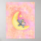 Esta é uma poster adorável para o berçário de uma menina ou para o quarto de uma menina. A imagem é uma menina elefante dormindo em uma lua crescente cercada por estrelas, com cor rosa e pêssego como as cores principais.