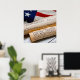 Cópias da Declaração de Independência e da Constituição dos EUA em pergaminhos enrolados com uma vintage bandeira americana