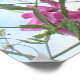 Flores cor-de-rosa com fundo branco e azul-céu.