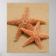 Duas estrelas de açúcar grandes numa praia suave de areia.