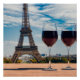Dois copos de vinho na torre Eiffel e fundo do horizonte de Paris