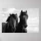 Dois garanhões frisesianos. Captura de cabeça de garanhão frisético. Estes cavalos são talvez uma das raças mais graciosas e impressionantes. Impressionante por causa do seu tamanho e aparência forte. Imagem em preto e branco. Imagem de Jan Brons