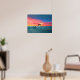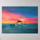 Poster com trabalho de arte de uma piscina de golfinhos lúdica e saltando no oceano sob um belo pôr do sol da praia (obra de arte original KL Stock)
