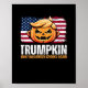 Um design de Dia das Bruxas Donald Trumpkin com bandeira americana. Patriótica, política e assustadora.
