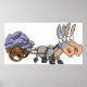 Um casal de burros cansados puxando um carrinho atrás deles. Esta design parece realmente eficaz nesta Poster