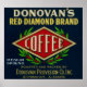 A etiqueta do café de Donovan - Birmingham, AL foi criada em 1930. Esta imagem mostra cenas de Birmingham, AL.