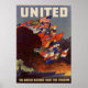 Bandeiras da Aliança das Nações Unidas sobrevoam uma batalha marítima enfumaçado nesta antiga poster patriótica da Segunda Guerra Mundial. Esta imagem está no dominio público, e faz um poster de parede impressionante.