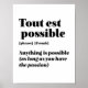 Tout possível. Tudo é possível. O inspirador e motivacional francês cita design para aqueles que amam a bela e romântica língua francesa. Legal mercadoria com estilo de definição de dicionário misturada com sarcasmo e humor leve. Quem diz que não pode ser engraçado, chique e legal enquanto inspira os outros com essas palavras perspicazes e discursos de vida. Excelente souvenir, presente de Natal e aniversário para aqueles que sonham em viajar para Paris e se apaixonarem pela Torre Eiffel.