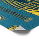 Dourada cabeça esfinge com hieróglifos egípcios em couro azul
