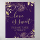 Este design poster apresenta falso ouro e folhagem num estilo moderno e mínimo de desenho de linha sobre um fundo sólido. "O amor é doce, por favor, faça um tratado!" apresenta uma tipografia cursiva escrita à mão em ouro correspondente. Esta placa é a forma perfeita de deixar os convidados do casamento ou do chá saberem onde pegar suas doces roupas.