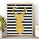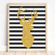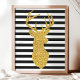 Linda e moderna e moderna cabeça de veado e poster de galhadas. Apresentando bonito listras brancas e pretas. Faz uma bela declaração para o Natal!