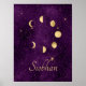 Poster Dourada Lua Fases Estrelas Roxas Personalizadas