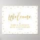 Este sinal de boas-vindas elegante apresenta confetes dourados texturizados e tipografia moderna. Sinal de boas-vindas perfeito para uma festa de celebração de aniversário de casamento dourado e chique.