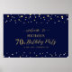 Bem-vindos aos seus convidados a um dia especial de celebração com este na moda de ouro e marinho de sinal azul de boas-vindas. Este poster apresenta a tipografia moderna" Bem-vindo ao 70 Birthday" e um design de confetti hexagon. Você pode personalizar o nome e a data. Convites e suprimentos de festa estão disponíveis no meu compro BaraBomDesign.
