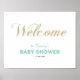 Este poster de sinal de boas-vindas é perfeito para um chá de fraldas de tema de cor verde ouro e menta. O design apresenta tipografia "bem-vinda" com brilho dourado e layout simples. Este sinal personalizado de boas-vindas será um toque final na decoração do seu chá de fraldas.