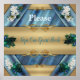 Poster Dourado, Penas Peacock na Emerald Green Silk