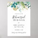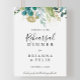 Este sinal de boas-vindas do janto de ensaio floral tropical de ouro é perfeito para um ensaio de casamento moderno. A design apresenta predominantemente folhagem verde-aquosa pintada manualmente, associada a flores douradas.