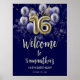 Poster Dourado Sweet 16 Bday Balloons Blue Welcome Sinal
