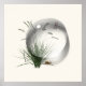 Vida sob uma gota de água. Este pôster de arte apresenta uma ilustração botânica e uma gota de água contra um fundo creme claro. A cena natural caprichosa e sonhadora inclui grama, um caracol e uma libélula. A gota de água cria a ilusão de ampliação, destacando a ilustração botânica.