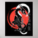 Dragão negro, poster de lua vermelha. Design surpreendente de oriental/japonês. Dragão, lua e carta.