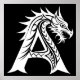 Poster Dragon Styled Letter A, Dragon Alphabet, Monogram