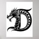Poster Dragon Styled Letter D, Dragon Alphabet, Monogram