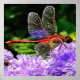 Póster Dragonfly Vermelha em Flores Violetas Roxos