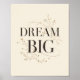 This inspiring art print features the powerful quote "Dream Big" rendered in a sophisticated, modern serif font, conveying elegance and ambition.