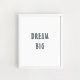 Poster "Dream Big", citação positiva, arte em parede.