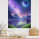 Esta é uma obra de arte digital impressionante capturando a fusão perfeita do vasto cosmos e uma paisagem terrestre fantástica. Dominado por matizes roxas e rosas encantadoras, o trabalho de arte retrata uma magnífica Galáxia roxa que atravessa o céu noturno, com um enorme planeta azul-roxo pairando acima. As montanhas abaixo são espelhadas em um lago calmo, parecido com vidro, criando uma atmosfera de outro mundo cheia de mistério e fantasia. O vívido primeiro plano verde adiciona vitalidade à cena, belamente contrastando com o cosmos legal. Esta design é perfeita para compradores que amam arte de ficção científica, espaço, romântica ou fantasia. Quer impressa em posters, T-shirts, capas de telefone, travesseiros ou qualquer outra peça doméstica, irá adicionar um toque único e cativante de cor ao seu espaço de vida.