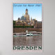 Atravesse o rio Elba, de Dresden, a Frauenkirche recentemente reconstruída, dominando a linha do horizonte. Dresden, Sachsen, Alemanha