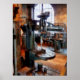 Essa design de uma furadeira num compro de máquina perto de uma janela seria perfeita para qualquer pessoa no comércio de edifícios como carpinteiros, encanadores, pedreiros e maquinistas.