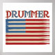 Póster Drum Stick USA Flag Drummer Camisetas e presentes