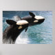 Duas baleias assassinas (Orcinus orca - Cetacean - Mammal) saltando da água azul