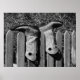 Imagem digital em preto e branco de um par de botas ocidentais em uma cerca de piquete de cedro. Tema da arte ocidental. Imagem digital de David Richter em 2012.