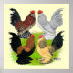 Os galos colombianos de pulgas, autoazuis, vermelhos castanhos e buff mostrados aqui são apenas uma amostra das lindas cores em que estas bonito galinhas bantâmicas são criadas.