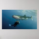 Tubarão-baleia ao largo da costa de Cabo México. Este foi um jovem tubarão-baleia muito curioso que chegou perto e inspecionou cada mergulhador individualmente, e depois foi dar uma olhada no nosso barco na superfície.