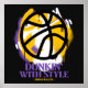 Uma bola de basquete do estilo grafite se rompe com tinta em spray, apresentando um contorno preto pesado acentuado por ouro vibrante e salpicos roxos. Esta peça homenageia o estreito, celebrando o talento, o trabalho em equipe e a arte do tronco, enquanto captura o movimento, o ritmo e o agitador urbano do jogo.