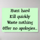 Duro, matar rápido, não desperdice nada, não ofereça desculpas. Palavras para todos os caçadores.
