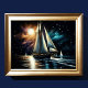 Duro Pastel Drawing Night Sailing A proporção largura/altura é 4:3. Ele foi projetado para ser impresso como 32x24"