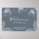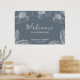 Bem-vindos aos seus hóspedes com este poster na moda elegante e elegante com uma elegante e antiga arte floral sobre um fundo azul empoeirado. Os campos de texto modelo são pré-projetados para permitir que você personalize facilmente. Por favor, dê uma olhada nos outros itens desta coleção para juntar todo o tema do casamento!
