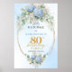Poster Dusty Blue Hydrangea Boho Floral 80th birthday