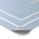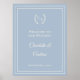 A dusty blue colored background. Decorated with a wreath and space for your monogram letters. A soft ivory colored frames, wreath and text. Personalize and add your names and the wedding date.