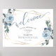Poster Dusty Blue Rustic Calliografia Floral Bem-Vindo
