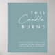 Este sinal de vela azul This Dusty Boho | Blue é perfeito para o seu casamento rústico e boêmio colorido. Seu design moderno simples e único, acompanhado por uma escrita minimalista contemporânea e uma paleta de cores azul empoeirada, dá a este produto um charme clássico e boêmio. Deixe-o como está ou personalize-o com arte ou gráficos de sua escolha. Você também pode olhar para outros produtos dentro desta coleção para unir todo o seu casamento!