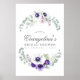 Poster de boas-vindas de chá de panela floral em tons pastéis com flores anêmonas, eucalipto, ranúculo e suculentos.