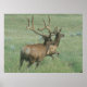 Pôster de Alce Macho com Antíolos em Veludo. Belos alces machos com casacos de verão e antíolos em veludo, o espaço entre as pontas do alce maior dá a um dos antíolos uma aparência quase de caribu.