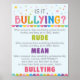 É o poster para a Campanha Anti-Bully, em sala de aula e também no escritório de um Conselheiro Escolar, Terapista Infantil, Psicólogo Escolar, Trabalhador Social e Escritório de Psicólogo Infantil?