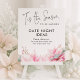 É a época Sinal de Ideias de Noite de Encontra com Poinsettia de Natal para Chá de Noiva. Disponível digitalmente e impresso. É a época está em um script elegante não editável. Personalize facilmente o resto das palavras. Com uma bela ilustração de poinsettia rosa e anel de noivado em aquarela.