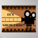 poster de teatro "It's Showtime" com borda de filme. Excelente para o home theater, gameroom ou den. 11x14 mostrado aqui. Também disponível em tamanhos 16x20 e personalizados.